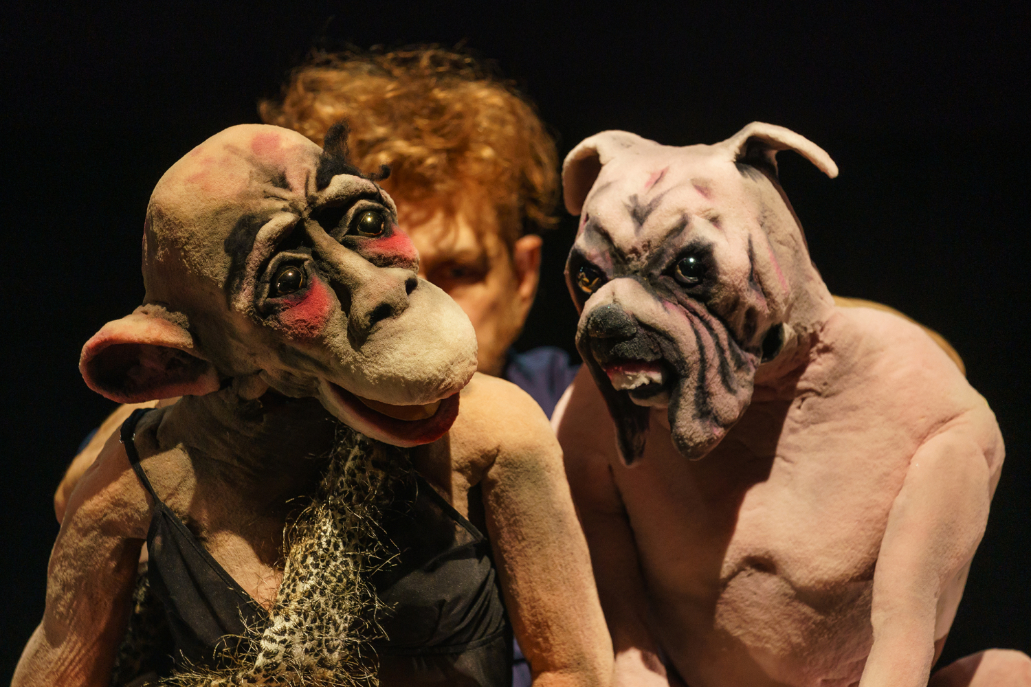 In front of the laboratory the mass is crowding to belong to the lucky few that is first in line. Inside the building is Bruce, a split personality, a drag queen of age, a man with a body that doesn’t want anymore, but somewhat closer to the chip than the rest. In the lab there is also Muffin, a monkey that has been extensively experimented on and that already has a chip. She is in pain but the scientists have ensured her that eventually she will be able to sing in a band. And there is Dioginis, a cynical dog that only seems to be able to live in a digital 3D-world. The laboratory is in a delicate balance that Bruce irrevocably disrupts with his presence.