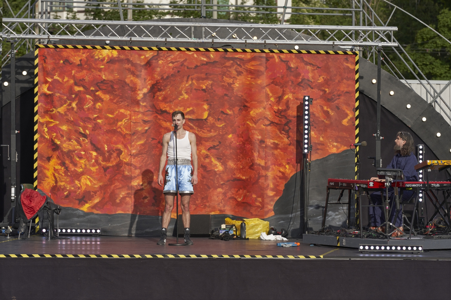 I Johan Paus regi följer vi en man spelad av Razmus Nyström. Mannen är fångad i ett mellanrum mellan liv och död. Fast i en explosion där katastrofen ännu inte har inträffat. Det oundvikliga kommer att ske. Men när? Med en brinnande angelägenhet och en starkt fysisk dynamik utforskar mannen meningen med livet såväl som med döden. Kristian Gidlunds ord bär oss genom en resa i livets slutfas och hjälper oss att gripa ett intensivt tag om nuet.