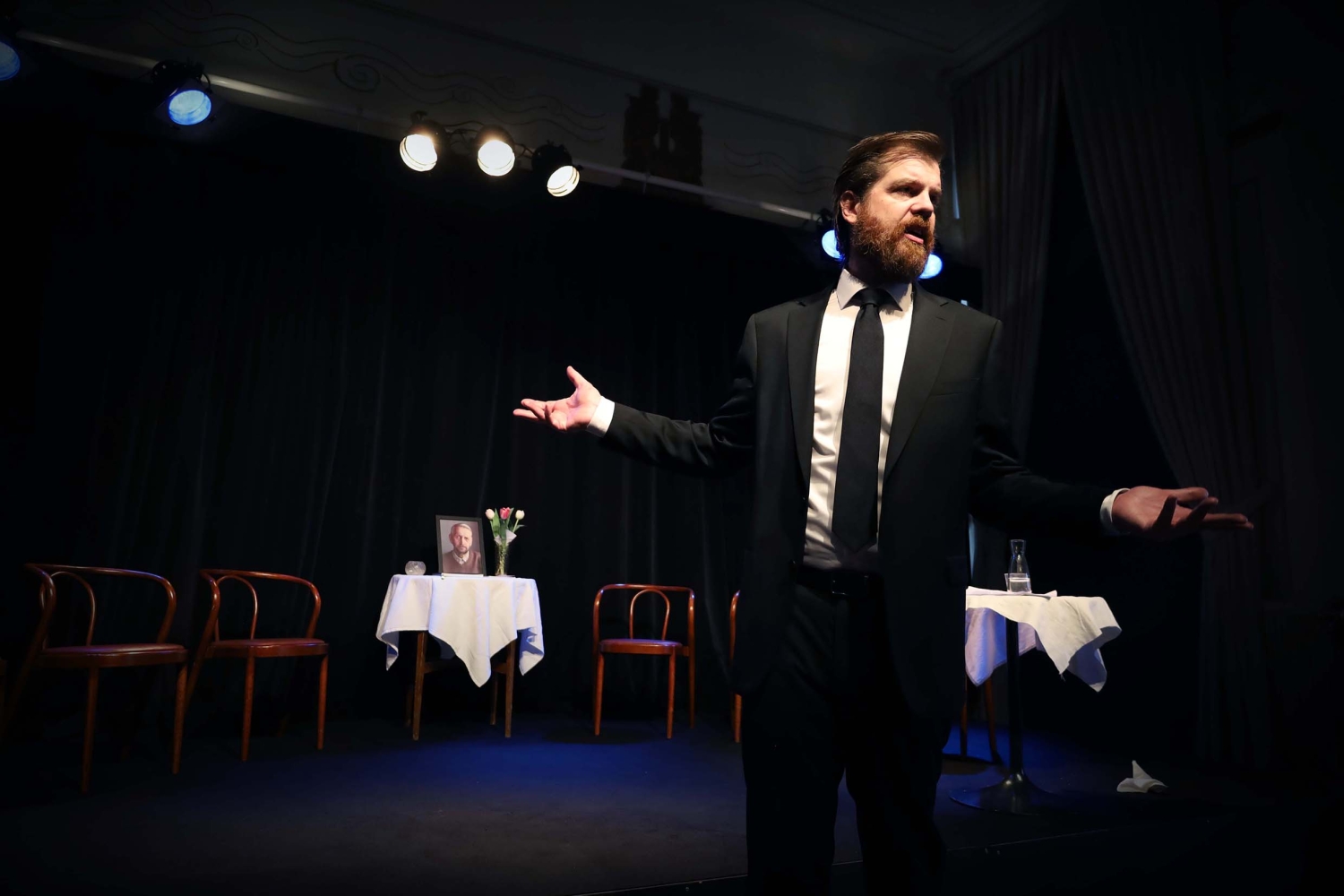 Kan man ha en minnesstund över någon som ingen minns? Den pensionerade skådespelaren Göran har dött, men vilka kommer att dyka upp och vad kommer att sägas? Minnesstunden är en dråplig monolog om den lilla människan i det stora bolaget. En föreställning om Döden, Marilyn Monroe och Macbeth. Om de roller vi spelar och om de spelar någon roll. Av och med Tobias Almborg.